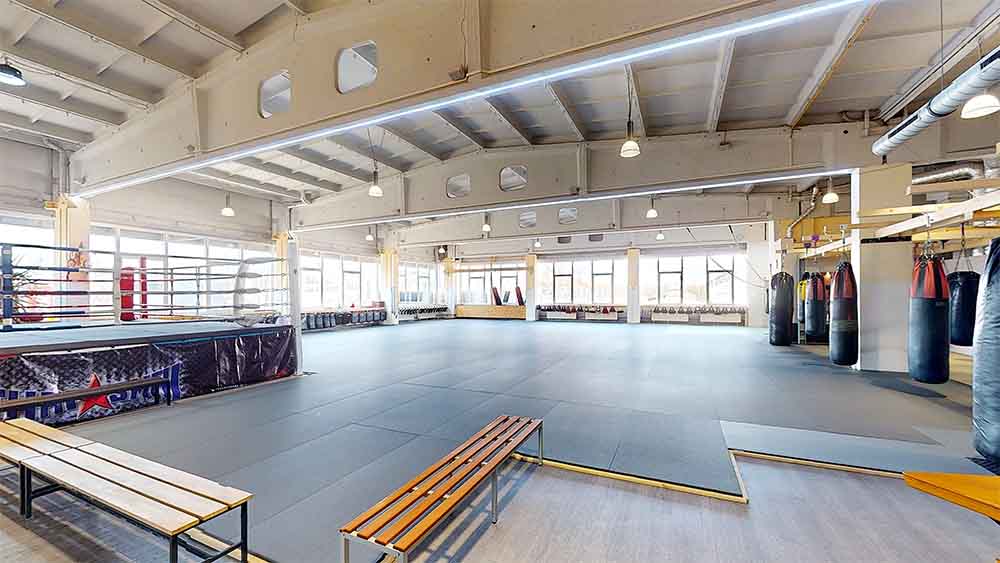 Main FloorDas Ringside GymAthletic AreaDieser Bereich ist multifunktional gestaltet: Hier finden Stand-Up-Kurse vom Muay Thai bis zum klassischen Boxen statt – ebenso wie MMA-, Fitness- und Yoga-Kurse. closeViel Spaß beim Training! Dein Ringside-Team
